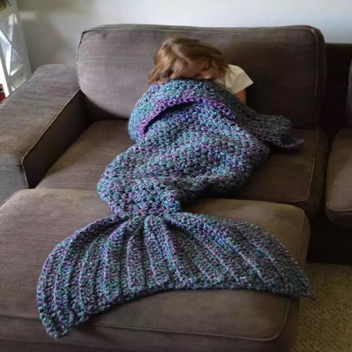 Bleu-la Sirène Couverture à Tricoter Couverture Couverture
